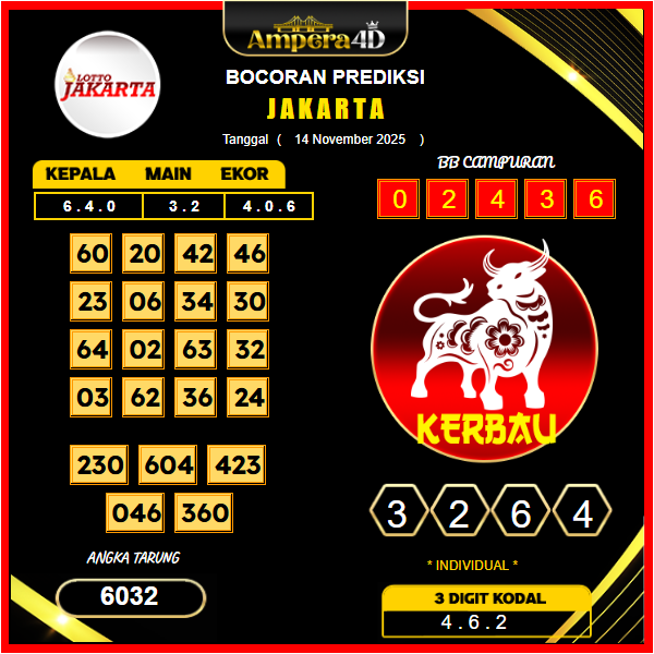 Prediksi Jakarta Hari Ini Selamat datang di prediksi Togel Jakarta 14 November. Sebagai salah satu pasaran togel lokal yang paling diminati, pasaran Jakarta memberikan sensasi tersendiri dengan peluang besar dan pola angka yang sering kali menarik perhatian para pemain. Ampera4D hadir dengan prediksi terpercaya, memberikan Anda analisis angka yang telah diproses berdasarkan data historis dan […]
