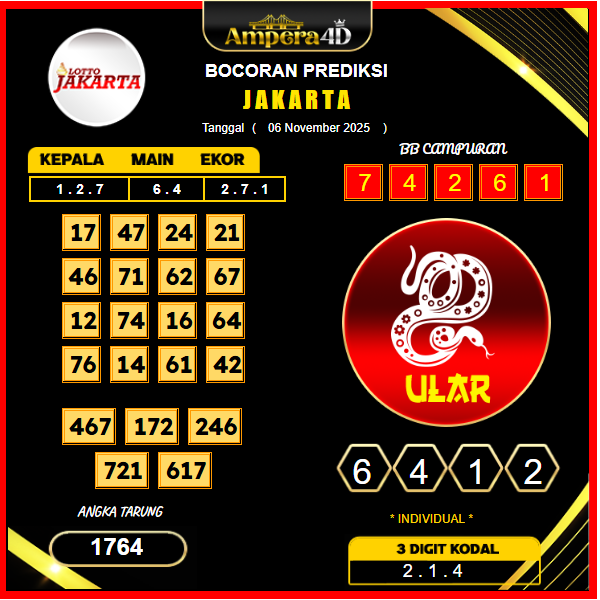 Prediksi Jakarta Hari Ini Selamat datang di prediksi Togel Jakarta 6 November. Sebagai salah satu pasaran togel lokal yang paling diminati, pasaran Jakarta memberikan sensasi tersendiri dengan peluang besar dan pola angka yang sering kali menarik perhatian para pemain. Ampera4D hadir dengan prediksi terpercaya, memberikan Anda analisis angka yang telah diproses berdasarkan data historis dan […]