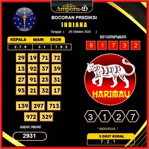 Prediksi Indiana Hari Ini Selamat datang di prediksi Togel Indiana 13 Oktober. Pasaran Indiana semakin populer karena peluang menarik yang ditawarkan, ditambah dengan sistem permainan yang sederhana namun tetap menantang. Prediksi yang akurat dapat memberikan panduan tambahan bagi Anda untuk memilih angka-angka terbaik. Beberapa kelebihan bermain di pasaran Indiana : Menyediakan peluang besar bagi pemain […]