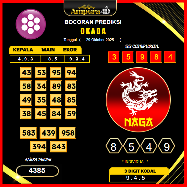 Prediksi Okada Hari Ini Selamat datang di prediksi Togel Okada 13 Oktober . Pasaran Okada semakin populer di kalangan pemain togel karena tingkat variasinya yang unik dan peluang besar untuk menang. Bagi Anda yang gemar menganalisis pola angka, pasaran ini menawarkan tantangan yang menarik dengan karakteristik khusus. Ampera4D hadir dengan prediksi terpercaya yang dibuat melalui […]